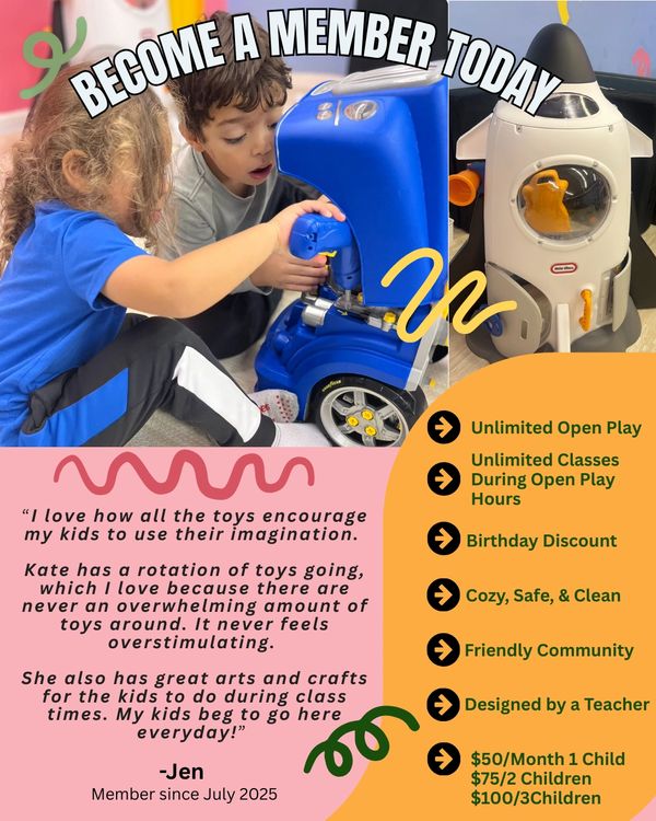- Open Play - Educational Classes - Community Events - Birthday Parties - Baby Showers - Play Dates - Private Rentals -